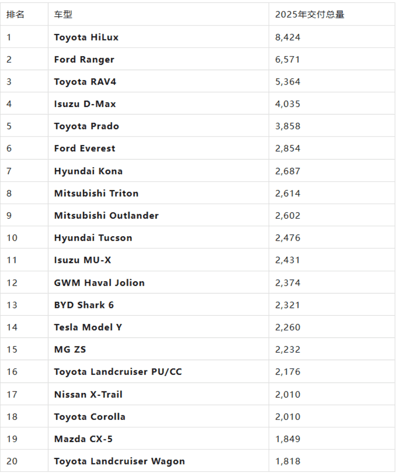 从这份榜单里你就能看出,我并没有骗你,西澳司机选择的车型是真的硬。