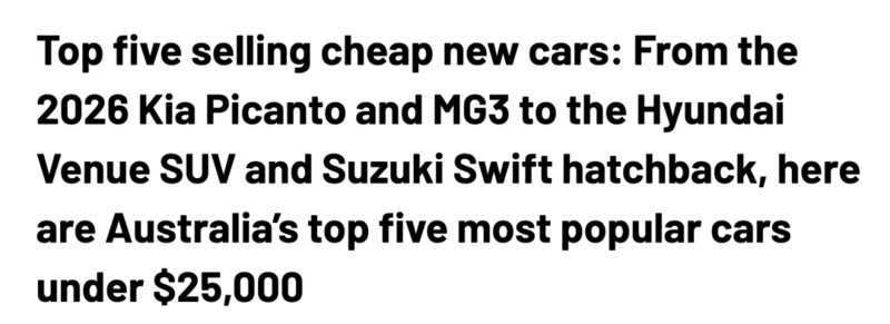 就在这几天,《Cars Guide》为澳洲 2025 年全年新车销量数据完成了最后汇总,这可能也是大多数澳洲人最关心的名单——澳洲最畅销的廉价车型。
