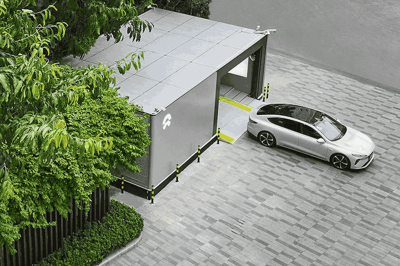 你只需驶入蔚来换电站,自动化机械臂会帮助你更换电池,3分钟后,你就能开车满电的车离开了。