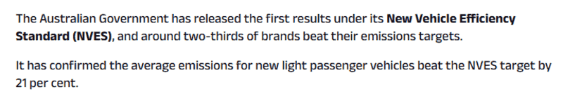 而这个涨价现象的背后推手并不是澳洲的通胀,也不是贸易芯片短缺,而是澳洲政府不久前才落地的“新车排放标准”(New Vehicle Efficiency Standard,简称 NVES)。