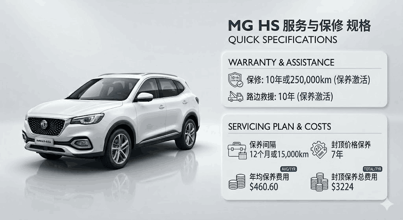 据MG提供的保养价格表,MG HS前七年的平均单次保养费用大约是460澳元。