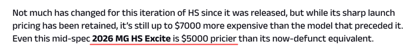 MG这个品牌在澳洲的立足之本之一,就是极高的性价比。然而,2026款第二代MG HS的定价策略发生了一些变化,甚至可以说,是一些偏移。
