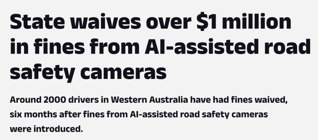 据《Car Expert》报道,西澳政府本次撤回的罚单多达约2000份,总价值超过110万澳元!为什么要撤回呢?是AI摄像头出错了吗?其实不全是。