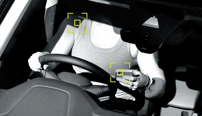与此同时,AI算法会实时扫描镜头传回的图像,从而判断驾驶员或乘客的行为。比如,你的腿上或手上有没有手机一样的长方形阴影,或者是否正确佩戴安全带,如果AI觉得你不对劲,它就会把你的照片标记出来。