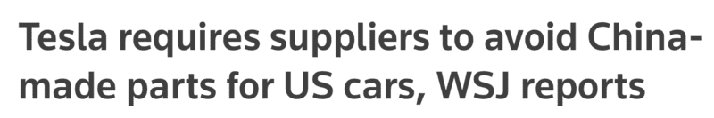 此前,《Drive》、《Car Expert》等澳洲主流汽车媒体都报道了特斯拉的行动,特斯拉已经开始要求其美国车辆生产链里的供应商不要再用中国制造的零部件。