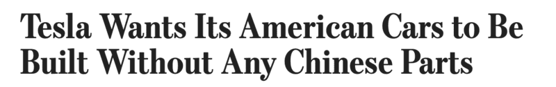 也就是说,特斯拉在中国生产的、面向中国市场的汽车,就不用和中国制造脱钩。