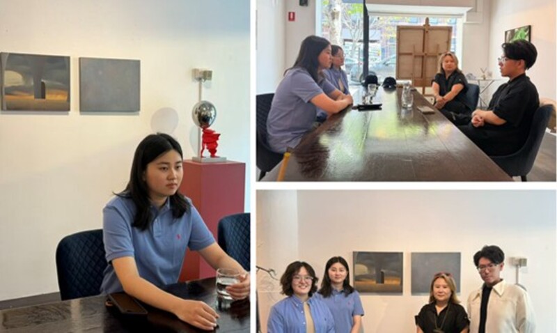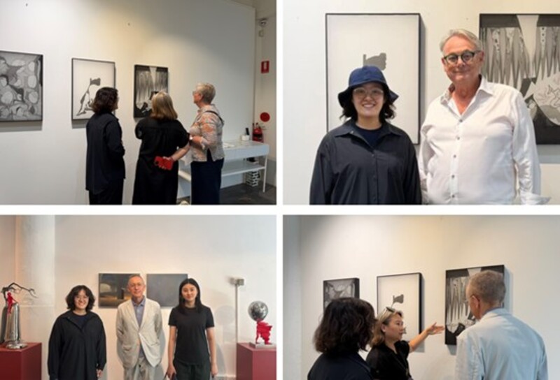 回溯这一段旅程的起点,张硕提到,一年前在中央美院首次与艾琳相识。那次简短的工作室拜访成为后续发展的开端。此后,艾琳持续关注她的创作,并最终促成了她参与悉尼游学计划,并获得在朱雀艺术平台展出的机会。