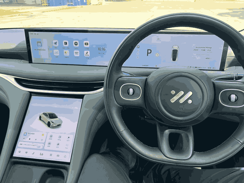 拉开车门坐进车内,最先震撼到眼球的绝对是那块屏幕。或者说,是那排屏幕。