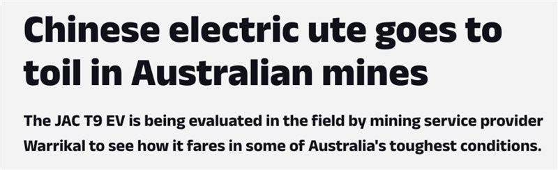 把电动皮卡拉进矿区的,不止是JAC。事实上,整个澳洲矿业正在经历一股明显的“电动化浪潮”。