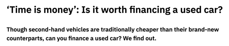 Canstar 的 Tindall 用得很直白的比喻:贷款可以让你“马上得到车”或者“买到更贵的车”,但如果主要动机是面子(或者买一辆你根本不负担得起的二手法拉利),那就得三思。