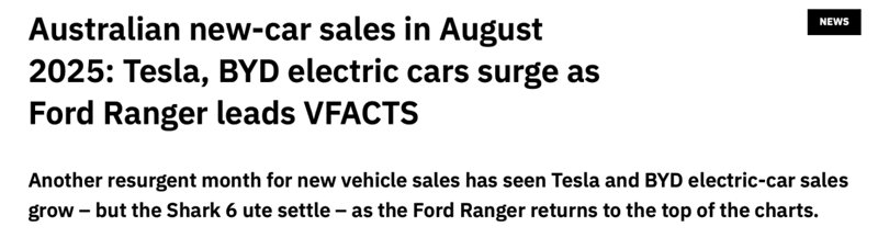 有人说这是一次市场小反转,也有人觉得只是供需变化的自然结果。但无论怎么解读,有一点可以确定:八月的数据告诉我们——澳洲车市的格局,正在被悄悄改写。