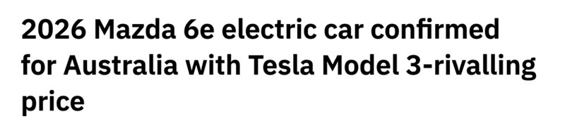 “我们要让消费者相信,这款车不是小众玩具,而是很多家庭可以依赖的日常座驾。” https://www.carexpert.com.au/car-news/mazda-6e-china-made-ev-confirmed-for-australia-with-tesla-rivalling-price